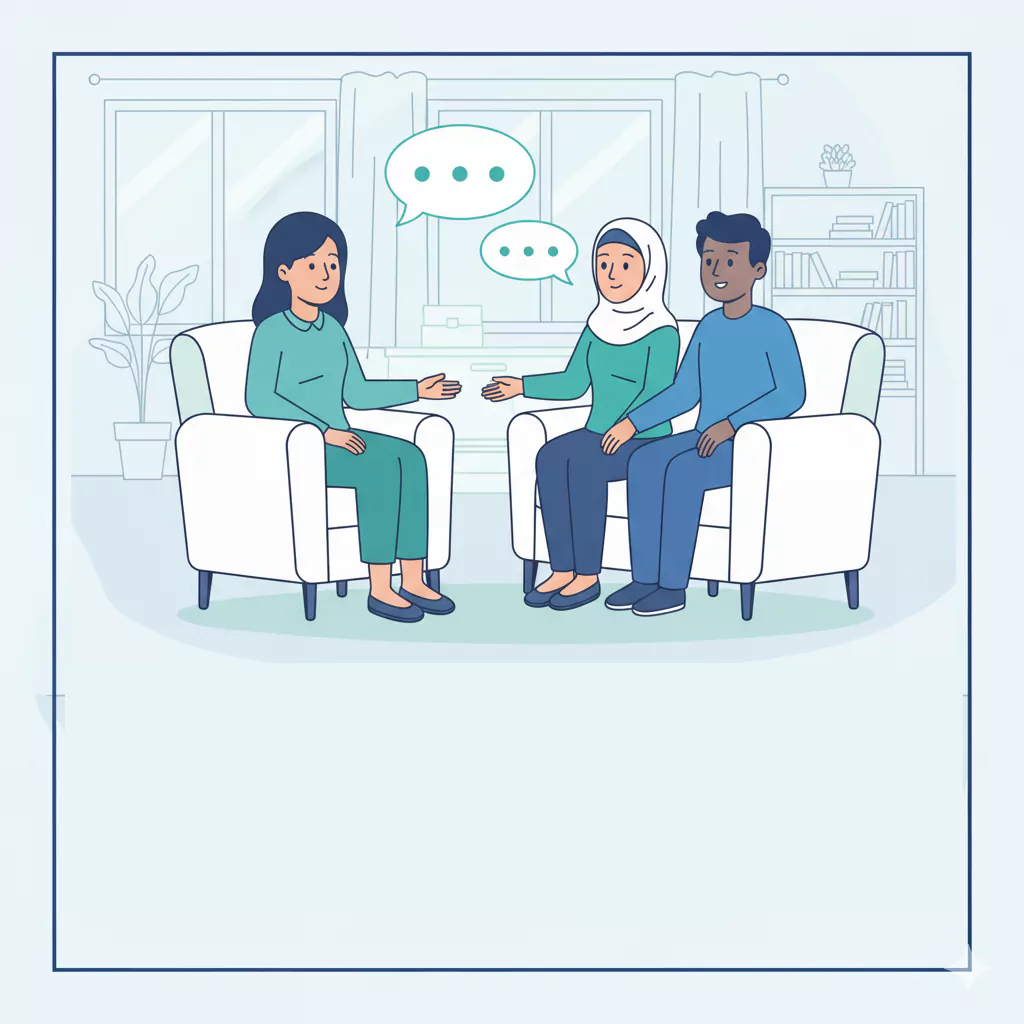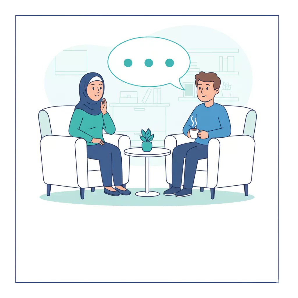 في الجلسة الأولى، نخصص وقتًا للتعارف والحديث عن تاريخك وتحدياتك. هذه خطوة أساسية لبناء الثقة وتحديد احتياجاتك بدقة.